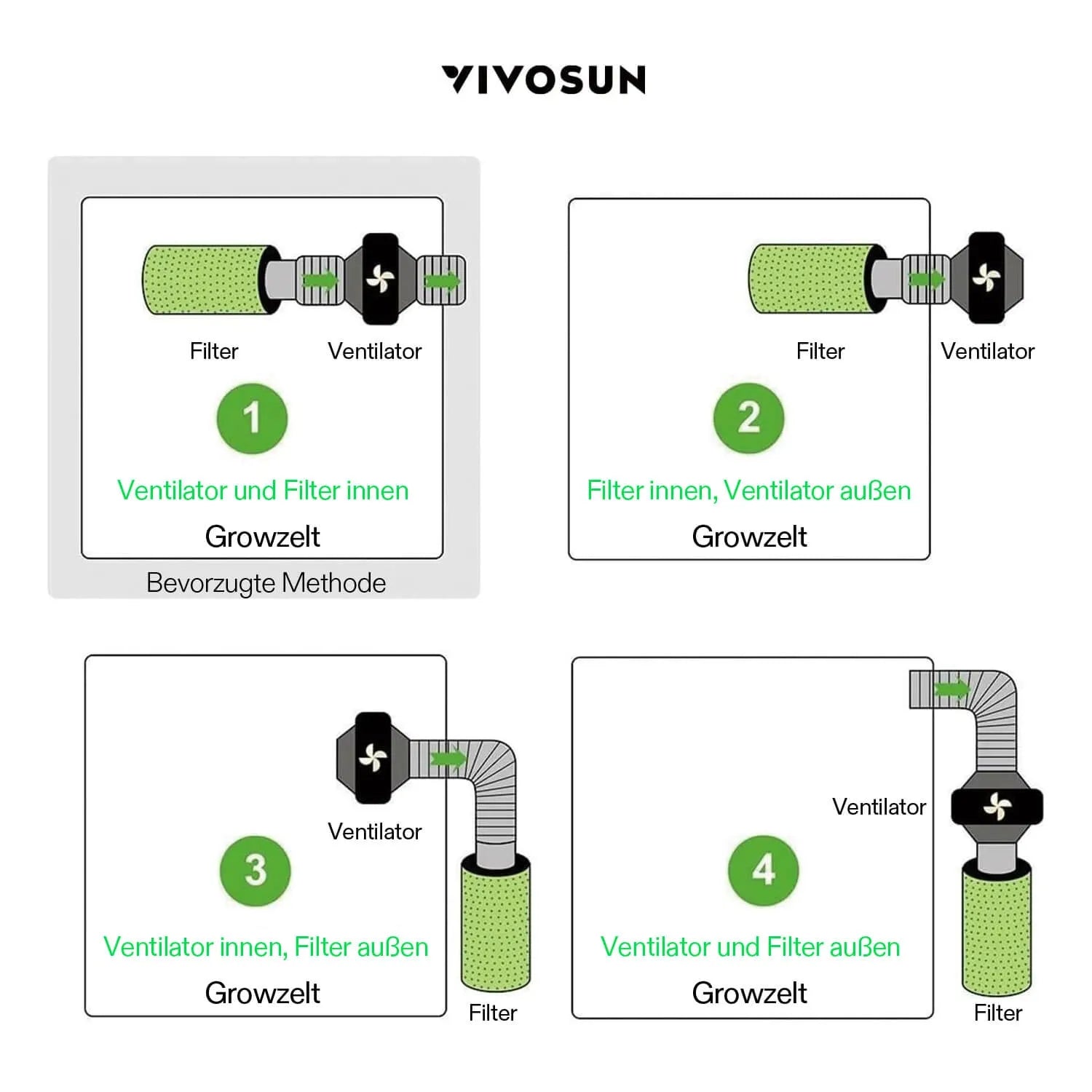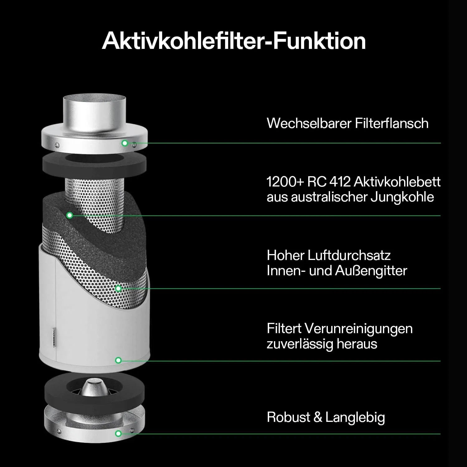 Abluftset R4 10 cm, Rohrventilator R4 mit variablem Drehzahlregler, Kohlefilter und Kanalkombination