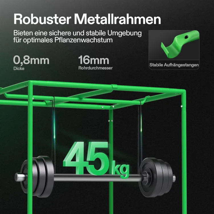 Die Vivosun Growbox ist die clevere Lösung für die Bedürfnisse von Growern. Gefertigt aus hochwertigen Materialien und ausgestattet mit Sichtfenstern, ermöglicht es dir, das Pflanzenwachstum in Echtzeit zu beobachten. Zudem lässt es sich mit weiteren Produkten unserer Marke zu einem smarten Komplettset aufrüsten. Als Basismodell unserer Zeltreihe deckt es die grundlegenden Anforderungen von Einsteigern ab – und das zu einem besonders kosteneffizienten Preis